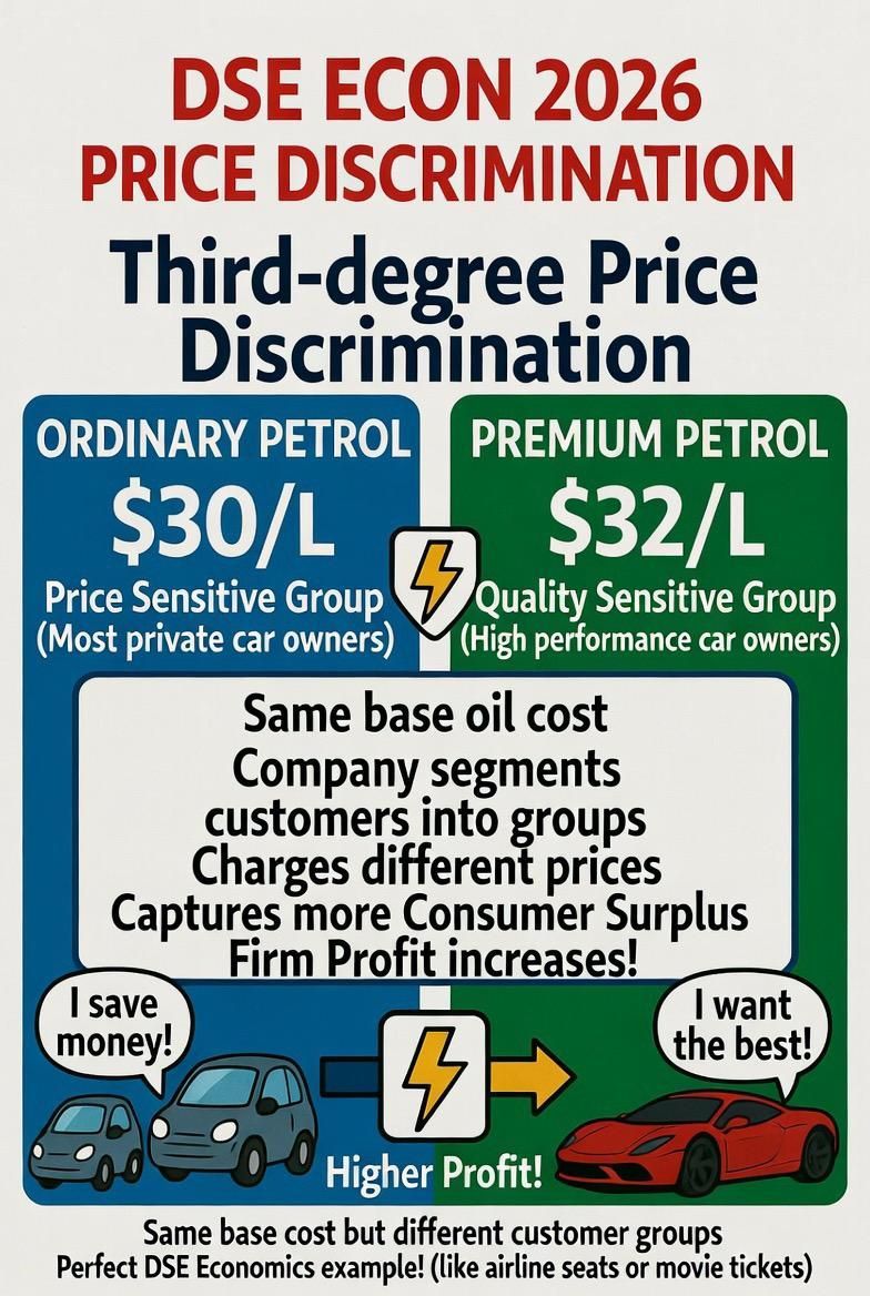 1. 中東戰雲密布,伊朗封鎖最短闊度得32km嘅霍爾木茲海峽,意圖癱瘓海運令油價急升,全球供應鏈所有嘢離唔開運輸,所以油價升可以話大獲過加租,由戰事起始,布油勁彈10-15%,經濟學上短期總供應因成本上漲而跌,推高通脹但同時減少產出,全球滯脹風險待爆 2. 返嚟香港,車用汽油已偷步加價,加幅約1-2%,布油已彈升,何以說偷步?香港油站一般有2-3周庫存,literally戰事影響未及油商,寡頭壟斷生態MC未動、價格先行🥹您懂的(可能是車主搶先排油谷高需求了吧) 3. 今日想講嘅係港油市場另一有趣現象,油站會賣所謂普通油同靚油,其實兩種油都係甲烷值98,只係後者會有添加劑,聲稱令引擎減少損耗,原來全世界只有香港將98 RON呢種油分兩級賣,一般車種出廠指引用95 RON已足夠,但港油站並無供應95 RON,即本身已焗車主買「靚油」,再分層榨消費者盈餘 4. 呢個算唔算3級價歧?你可以話靚油同普通油係兩種產品,但個分野可能只局限於情緒價值,將錫車嘅車主𠝹一波,引擎聲都好聽啲啦,如我之前喺航空公司艙等嘅分析講過,有壟斷能力嘅公司會愈加搵細微分野去創造更多價格分層,目標就係𠝹齊唔同彈性嘅人出嚟,利潤極大化