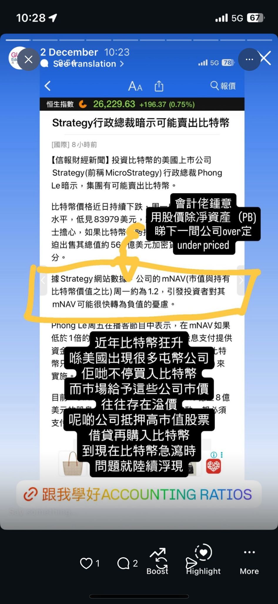 2. 當然呢種模式嘅兩個先決條件系加密貨幣價值呈長期升勢,且公眾要給予囤幣公司高於幣值嘅市值,故事先可以寫落去
